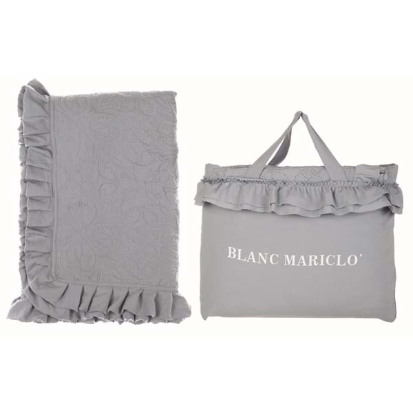 Il romantico boutis, realizzato in tinta unita di colore carta da zucchero , è decorato è rifinito ai tre lati con un delizioso volant, tono su tono.
