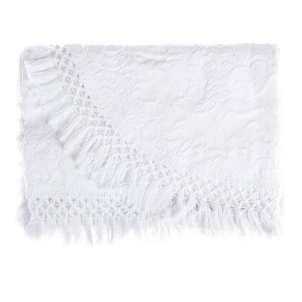 Copriletto singolo della linea "Ana Collection" di Blanc Mariclò, in perfetto stile vintage e shabby chic. Il copriletto bianco presenta dei disegni in rilievo tono su tono, le frange sui bordi arricchiscono e danno il tocco perfetto per renderlo una vera "chiccheria". Tessuto: 80% cotone - 20% poliestere.