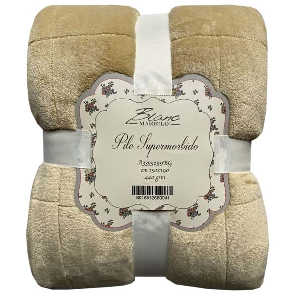 Morbido, caldo ed elegante plaid sherpa in tinta unita color beige proposto dalla Blanc Mariclò per le tue fredde serate invernali.