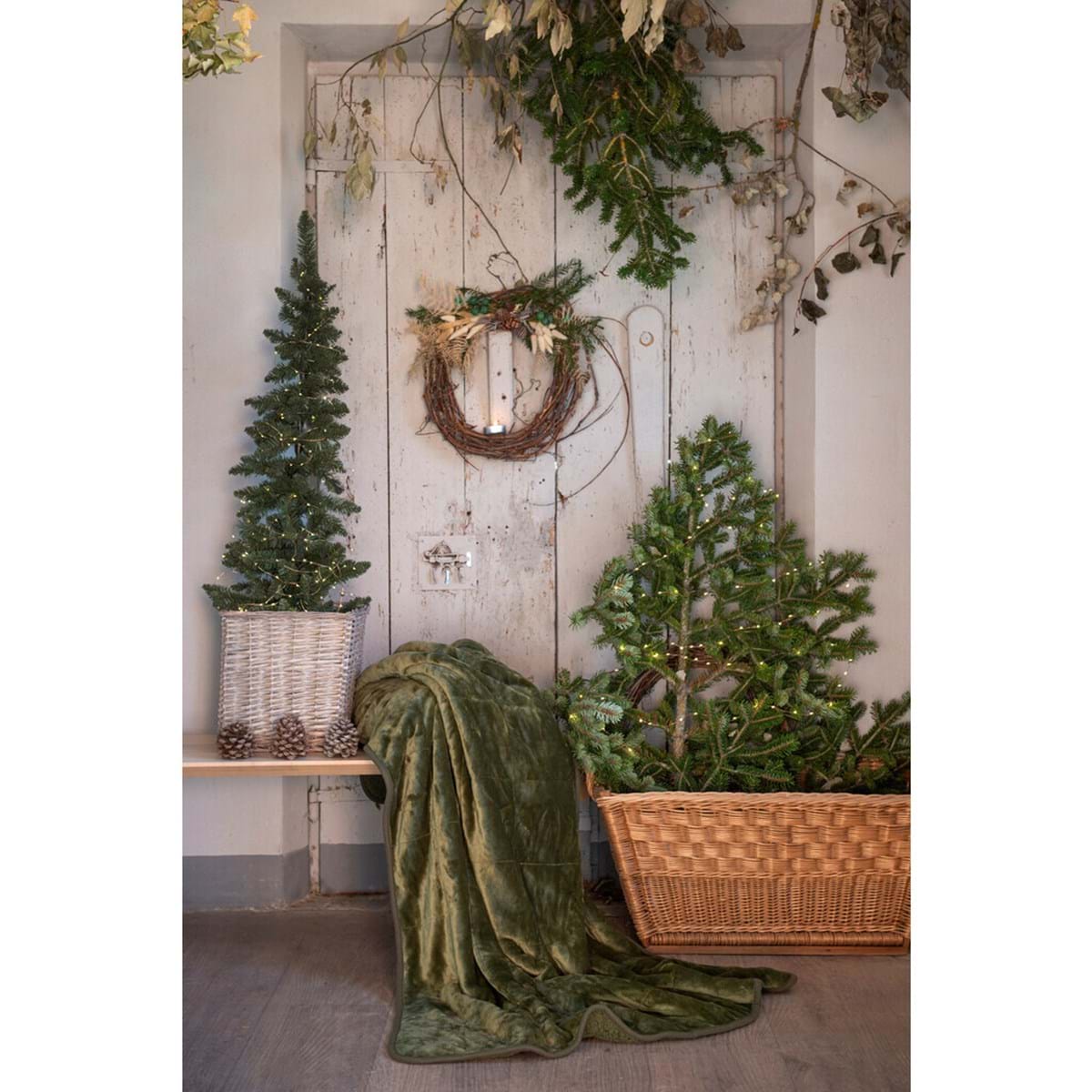 Morbido, caldo ed elegante plaid sherpa in tinta unita verde bosco proposto dalla Blanc Mariclò per le tue fredde serate invernali. Il plaid è realizzato da un lato in soffice pile dall'altro ancora più caldo per via del tessuto sherpa ossia pelliccetta agnellata. Tutti i lati del plad sono rifiniti da un delicato cordoncino. Perfetto come scalda piedi sul divano o a fondo letto.
