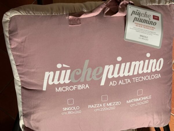 Meravigliosa trapunta da una piazza, letto singolo, in microfibra ad alta tecnologia. Calore, morbidezza ed estrema leggerezza. Elevato isolamento termico ed eccellente traspirabilità. Rispetta l'ambiente e gli animali. Bellissimo questo "Più che piumino" proposto da Lovely in double face, bicolore, ideale per cambiare look alla camera da letto in un semplice gesto.