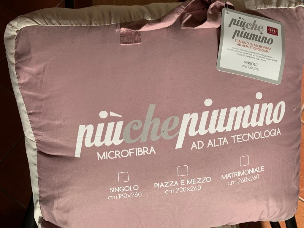 Meravigliosa trapunta da una piazza, letto singolo, n microfibra ad alta tecnologia. Calore, morbidezza ed estrema leggerezza. Elevato isolamento termico ed eccellente traspirabilità.