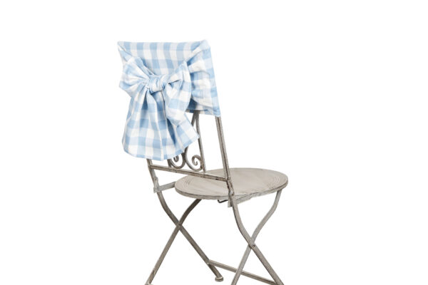 Bellissimo il set di copri sedia in puro cotone proposto da Nuvole di Stoffa in perfetto stile provenzale caratterizzato da un motivo a quadretti azzurro su fondo bianco.