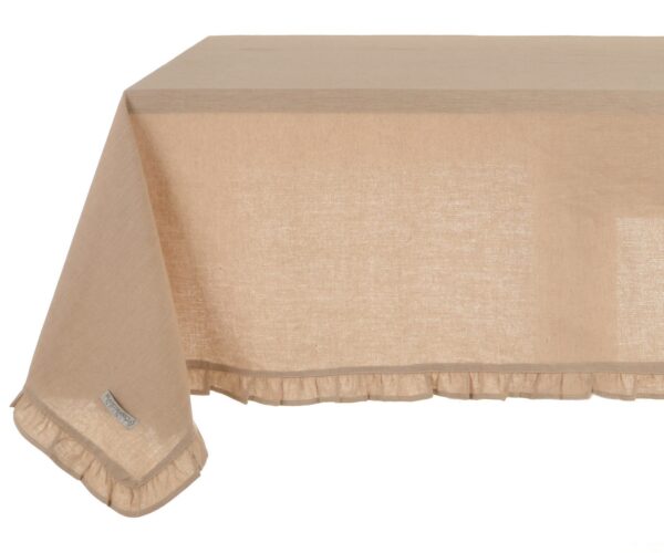 Tovaglia realizzata in puro cotone e decorata su tutti i lati da un delicato volant.