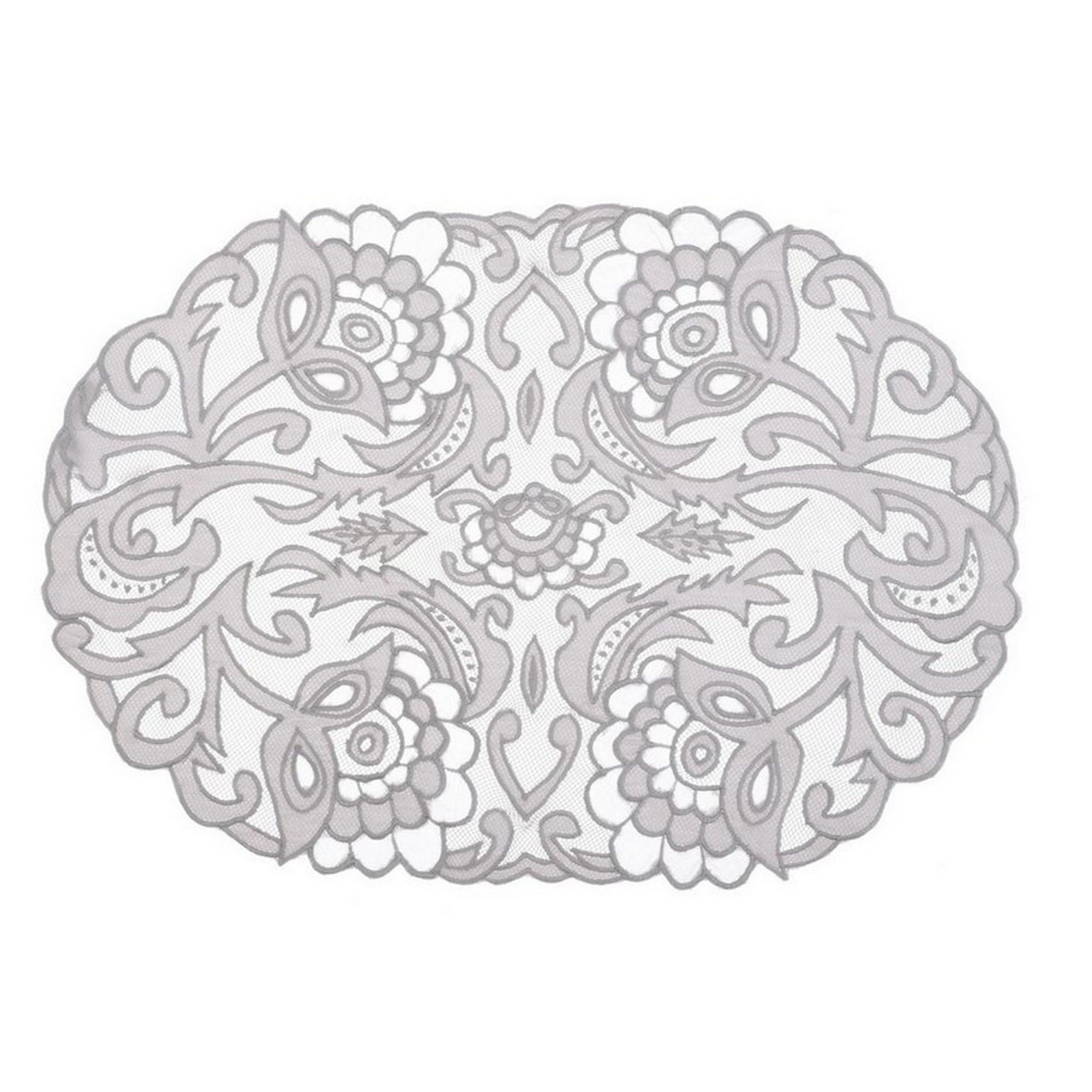 Tovaglietta/centrino ovale grigio con pizzo 35x50cm