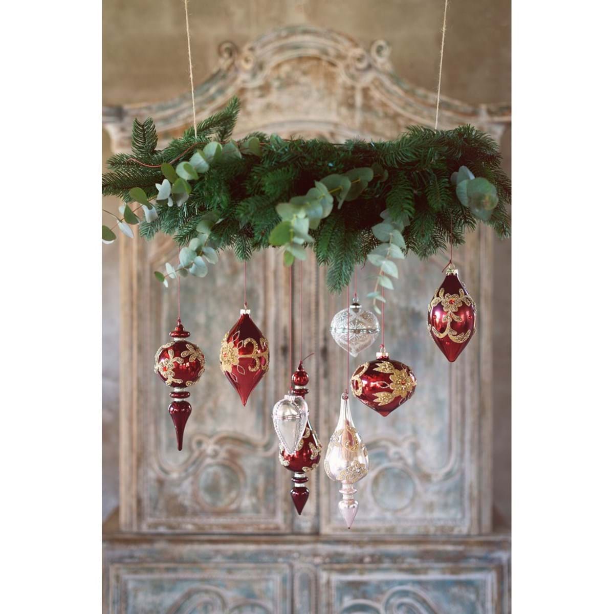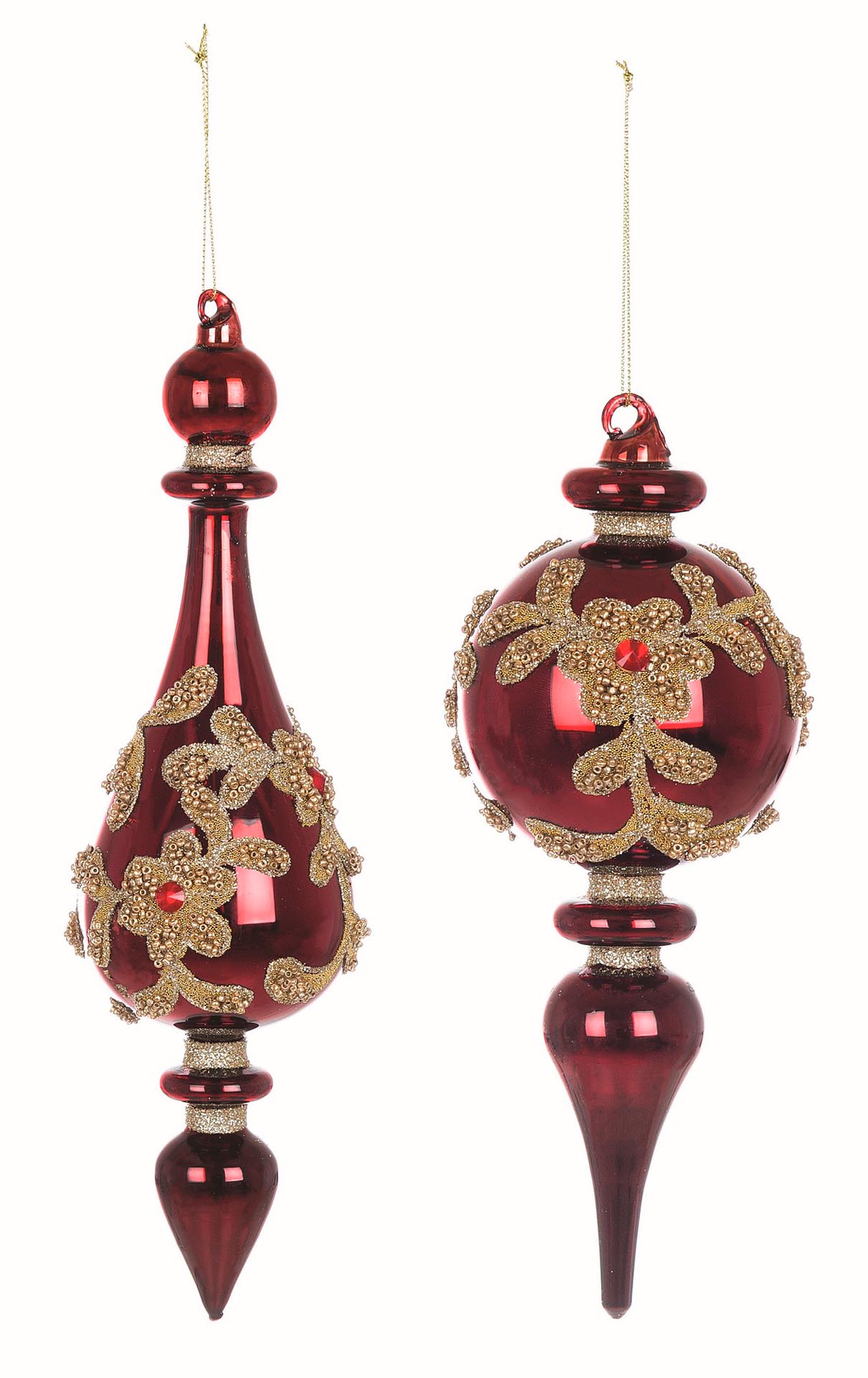 Preziosi decori natalizi assortiti, per albero di natale in vetro rosso, della Blanc Mariclo, Rococò Collection.