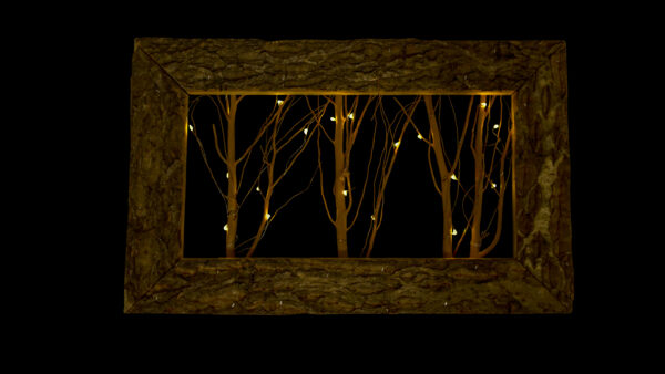 Il quadro proposto da Nuvole di Stoffa è un vero capolavoro di artigianalità. La cornice è interamente realizzata in vera corteccia d’albero ed all’interno i rami sono arricchiti da 20 led a luce calda.
